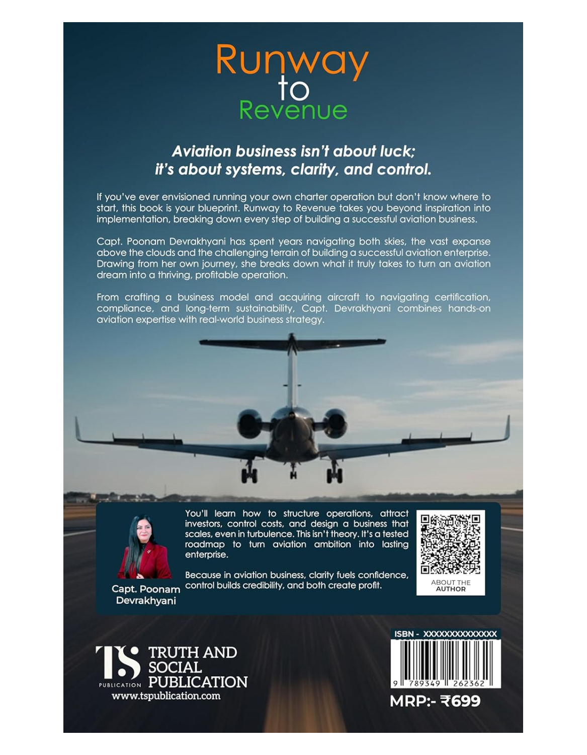 If you’ve ever envisioned running your own charter operation but don’t know where to start, this book is your blueprint. Runway to Revenue takes you beyond inspiration into implementation, breaking down every step of building a successful aviation business. Capt. Poonam Devrakhyani has spent years navigating both skies, the vast expanse above the clouds and the challenging terrain of building a successful aviation enterprise. Drawing from her own journey, she breaks down what it truly takes to turn an aviation dream into a thriving, profitable operation. From crafting a business model and acquiring aircraft to navigating certification, compliance, and long-term sustainability, Capt. Devrakhyani combines hands-on aviation expertise with real-world business strategy.